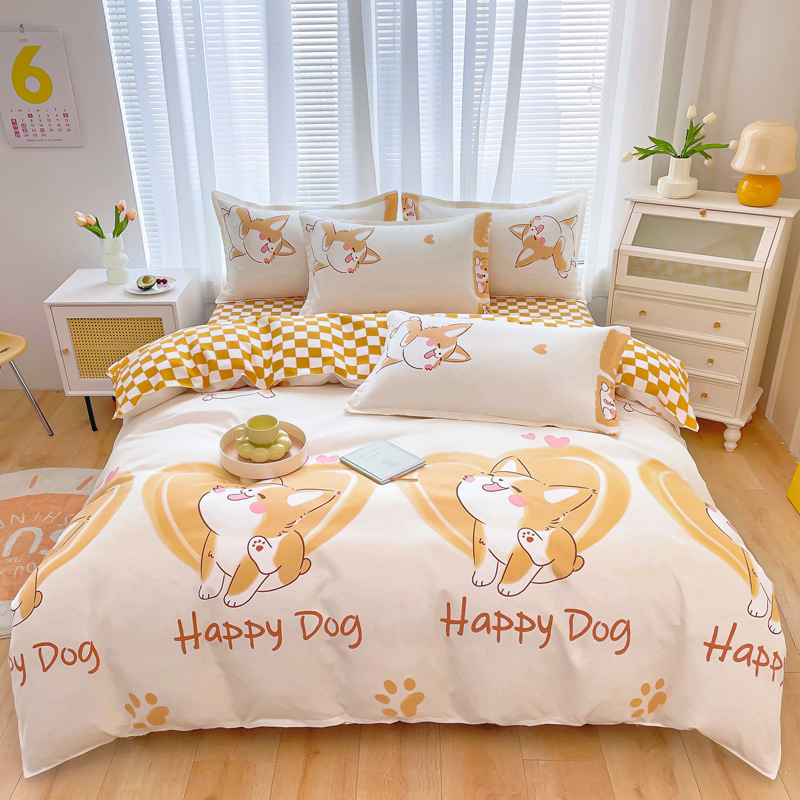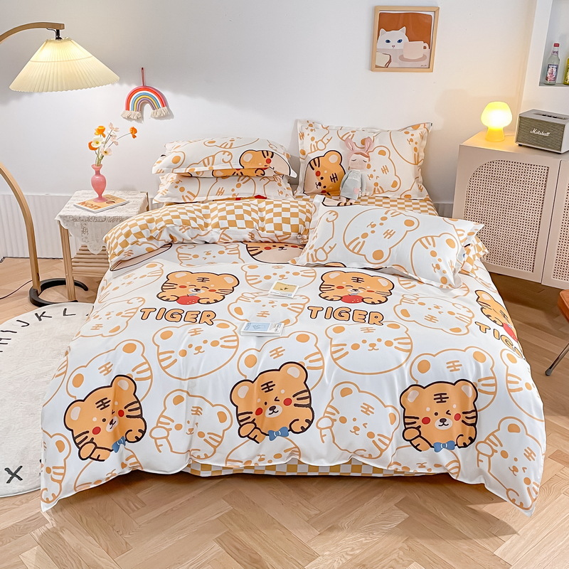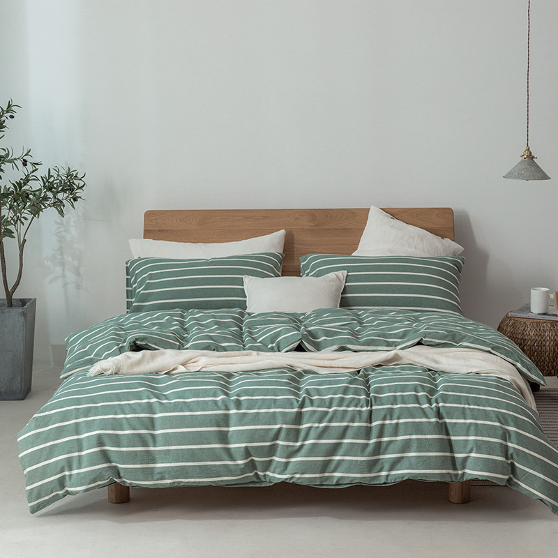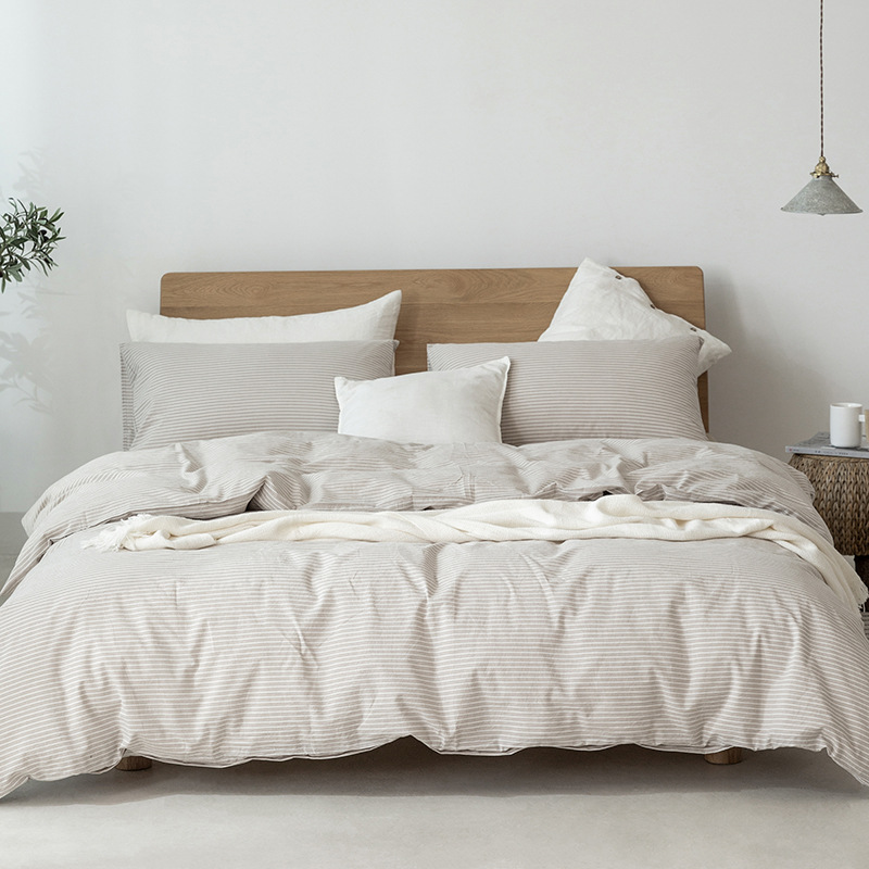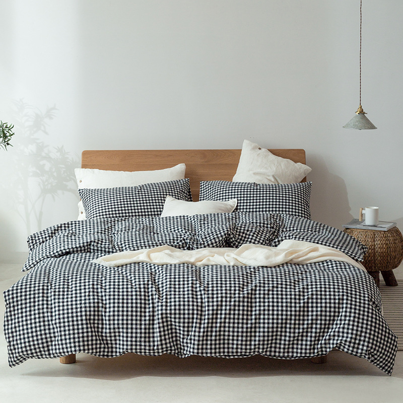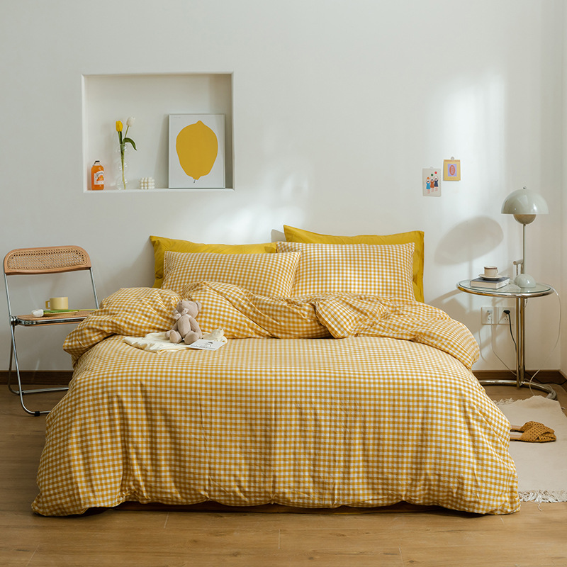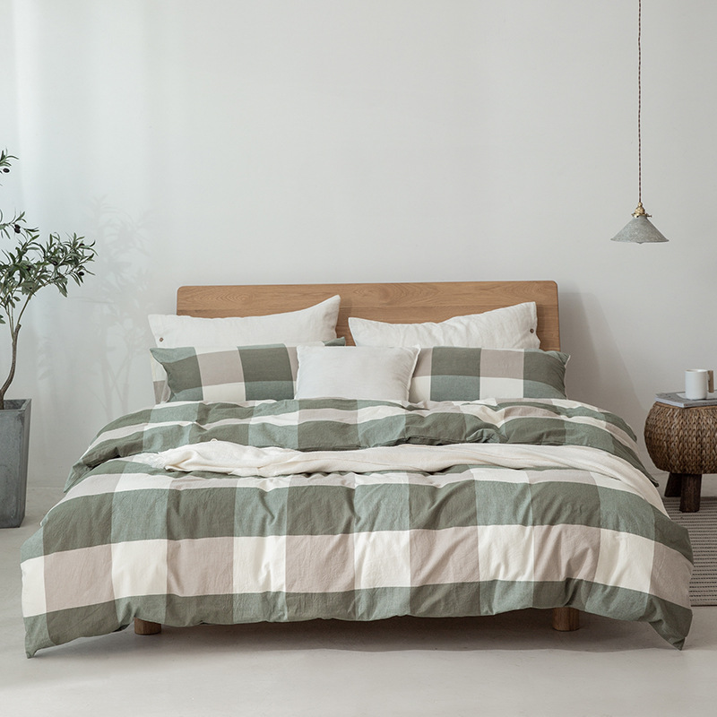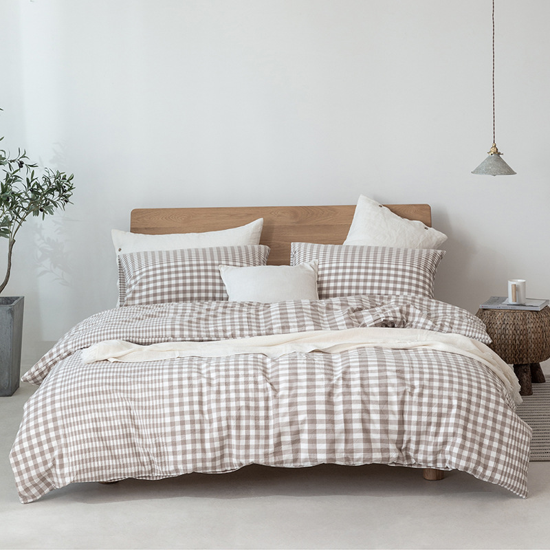 Washed Cotton Bed Sheet Set - Khaki plaid