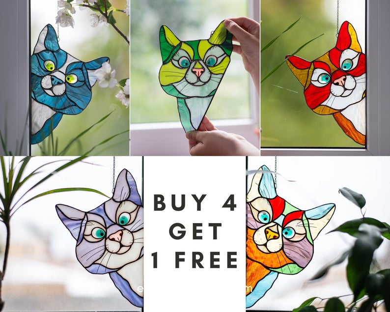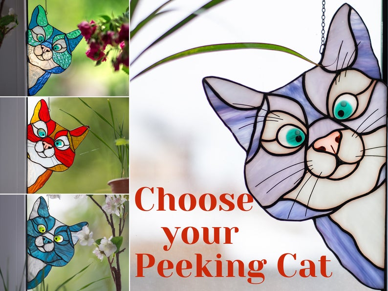 Peek cat stain glass cat suncatcher for window Funny cat decor Cat lover gift