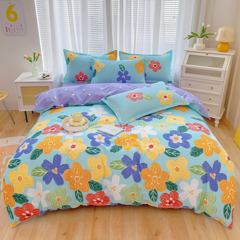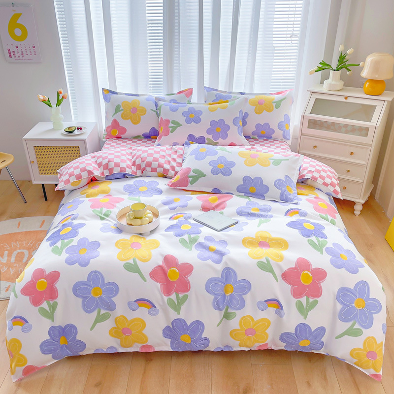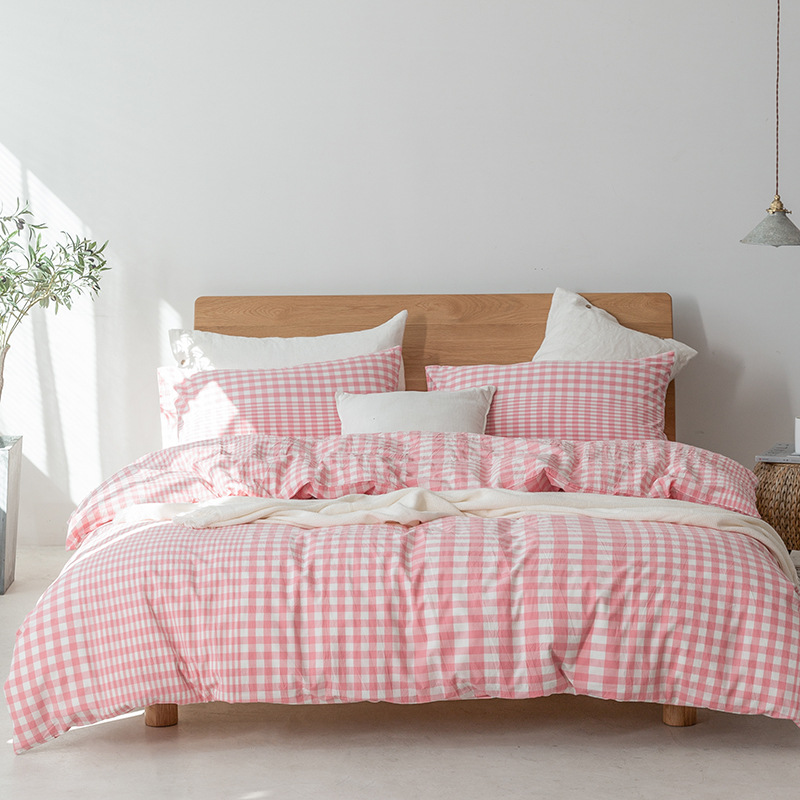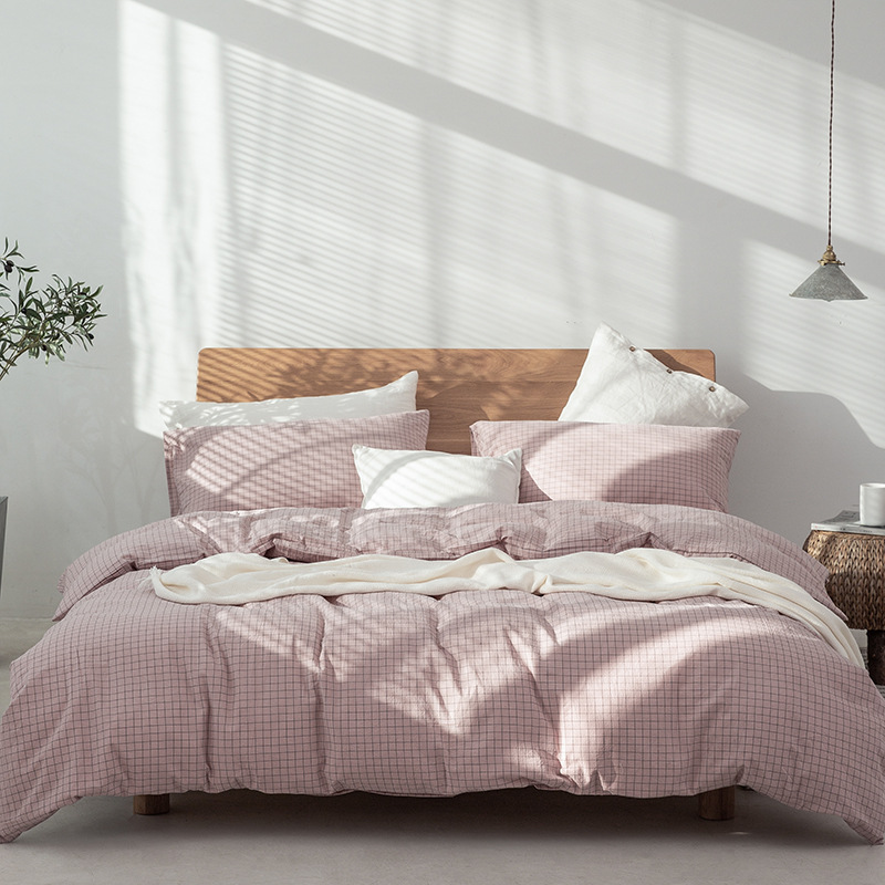 Washed Cotton Bed Sheet Set - Brown & Pink plaid
